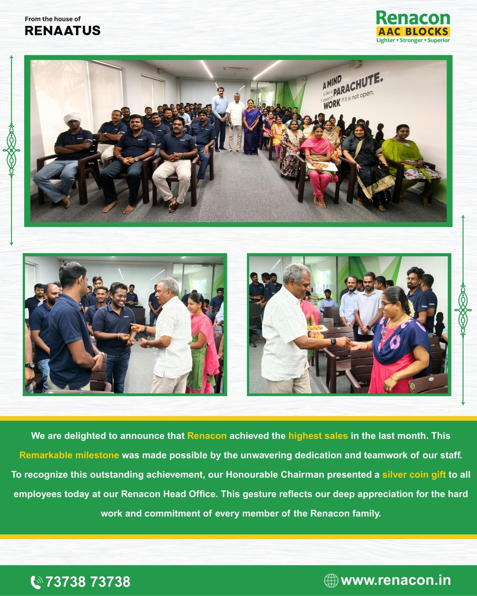 As a token of gratitude, our Honourable Chairman presented a silver coin gift 🪙 to every employee at our Head Office. This gesture reflects our deep appreciation for the hard work and commitment of the entire Renacon family. 🙌
