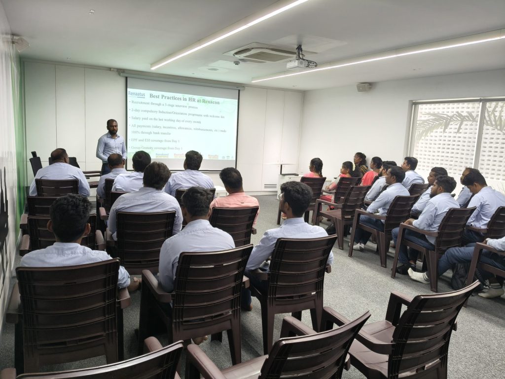 We conducted an Orientation Programme today at our Head Office, Erode, for our newly joined team members. The session aimed to enhance their understanding of our various departments and provide deeper technical insights into all Renacon products.